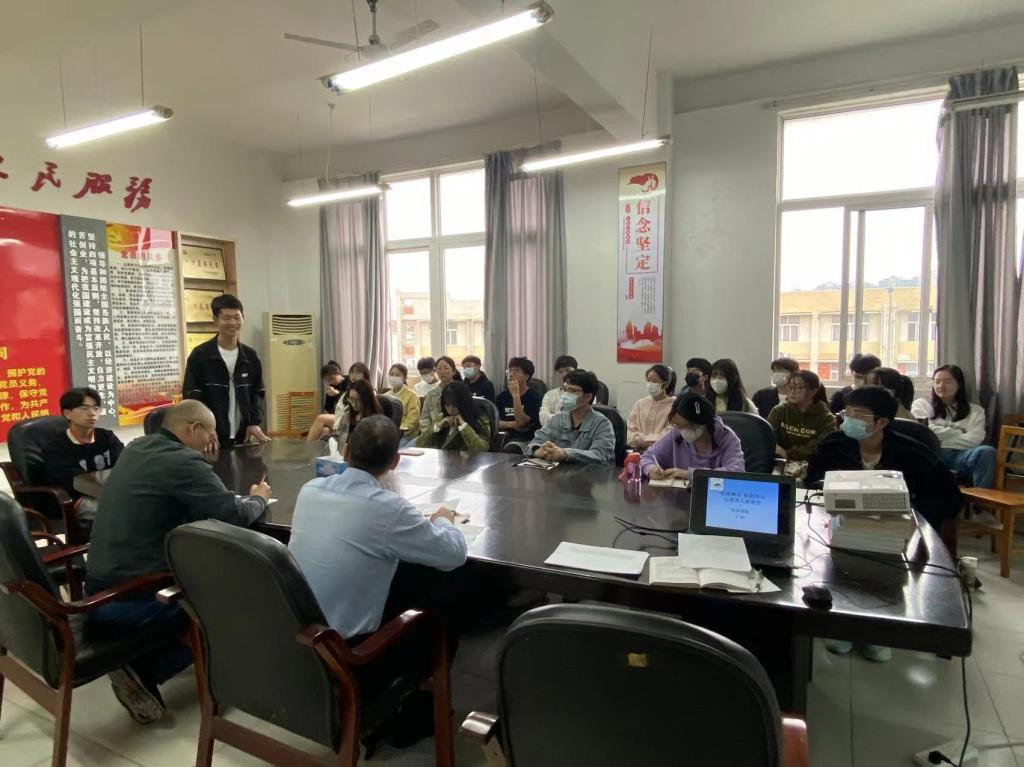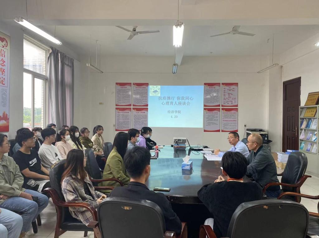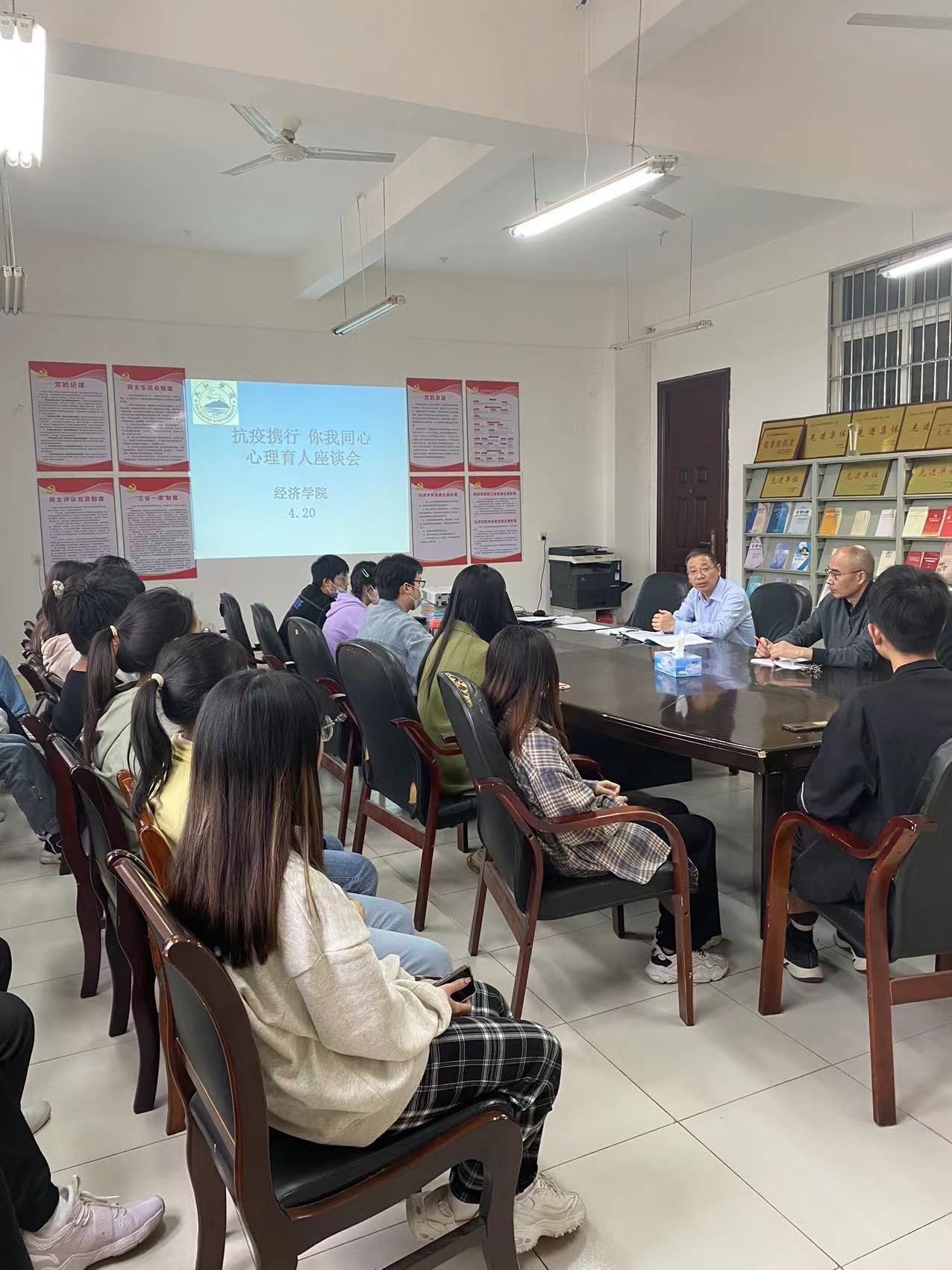 4月20日下午pg游戏电子模拟器在义丰楼619开展“抗疫携行 你我同心”心理育人座谈会。学院党委书记漆晗东、副书记谢忠、心理工作负责人丁春、各班心理委员参会。