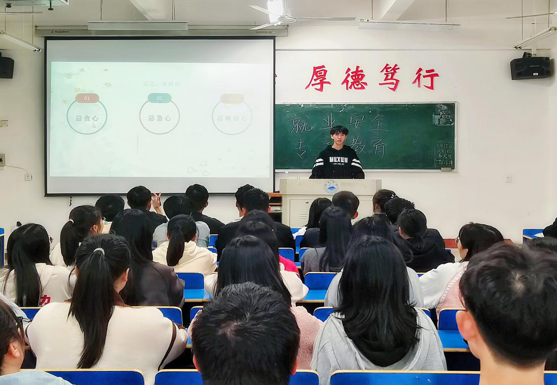 为进一步加强学风建设,帮助同学们更好地掌握求职技巧,11月15日,pg游戏电子模拟器于义丰楼开展以“就业安全教育”为主题的班会。本次班会由各班团支书主讲,大一所有班级参加。