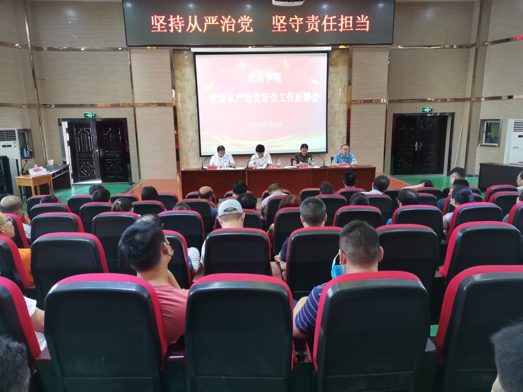 7月5日上午,pg游戏电子模拟器在香远楼三楼报告厅召开全面从严治党督查反馈会,pg游戏电子模拟器副校长王万山、督查组组长魏松、督查组成员、pg游戏电子模拟器领导班子及全体教职工出席大会,会议由党委书记漆晗东主持。