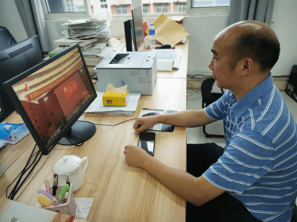 7月1日下午3时,江西省庆祝中国共产党100周年大会在井冈山隆重举行,pg游戏电子模拟器组织行政科室所有教职工集中观看这一盛况。各教研室教师们通过网络、电视、手机客户端等各类媒介进行观看,共同庆祝中国共产党百年华诞。