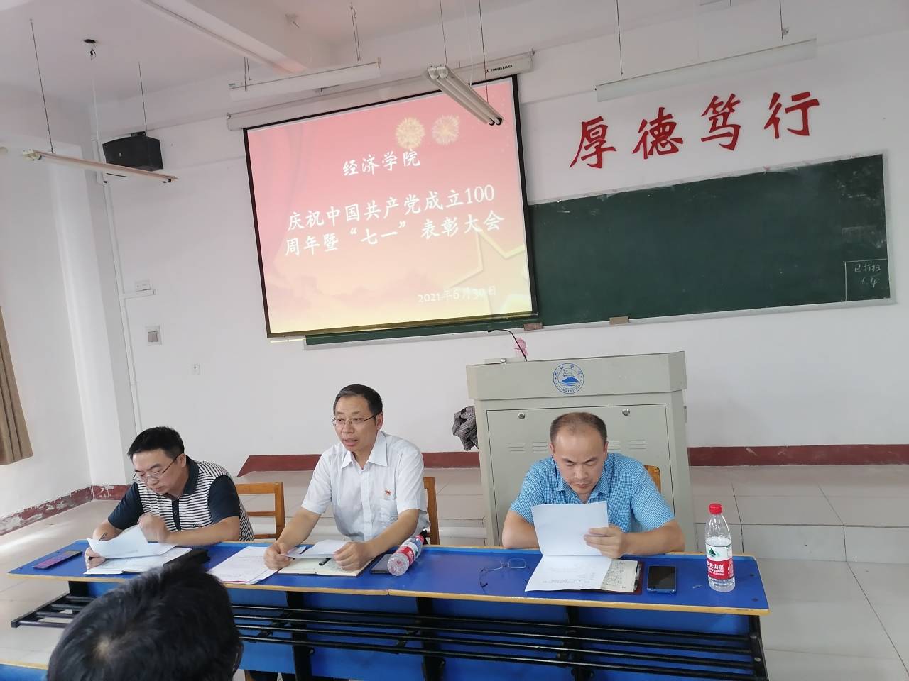 6月30日下午,pg游戏电子模拟器在义封楼502举行庆祝中国共产党成立100周年大会暨“七一”表彰大会,共同庆祝中国共产党百年华诞。党委书记漆晗东、院长项益才及学院全体党员出席大会,会议由副院长李华主持。