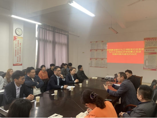 为了贯彻落实党中央“创新、协调、绿色、开放、共享”的发展理念,创新基层党组织活动形式,促进组织间相互学习、共联共建、共享共赢,pg游戏电子模拟器教工第三支部(下简称“第三支部”)结合学科实际和支部党员的学术专长,以党建引领,积极开展对交流与合作。4月14日下午,第三支部和中国建设银行九江浔阳支行,签定了“基层党组织共联共建合作协议”。