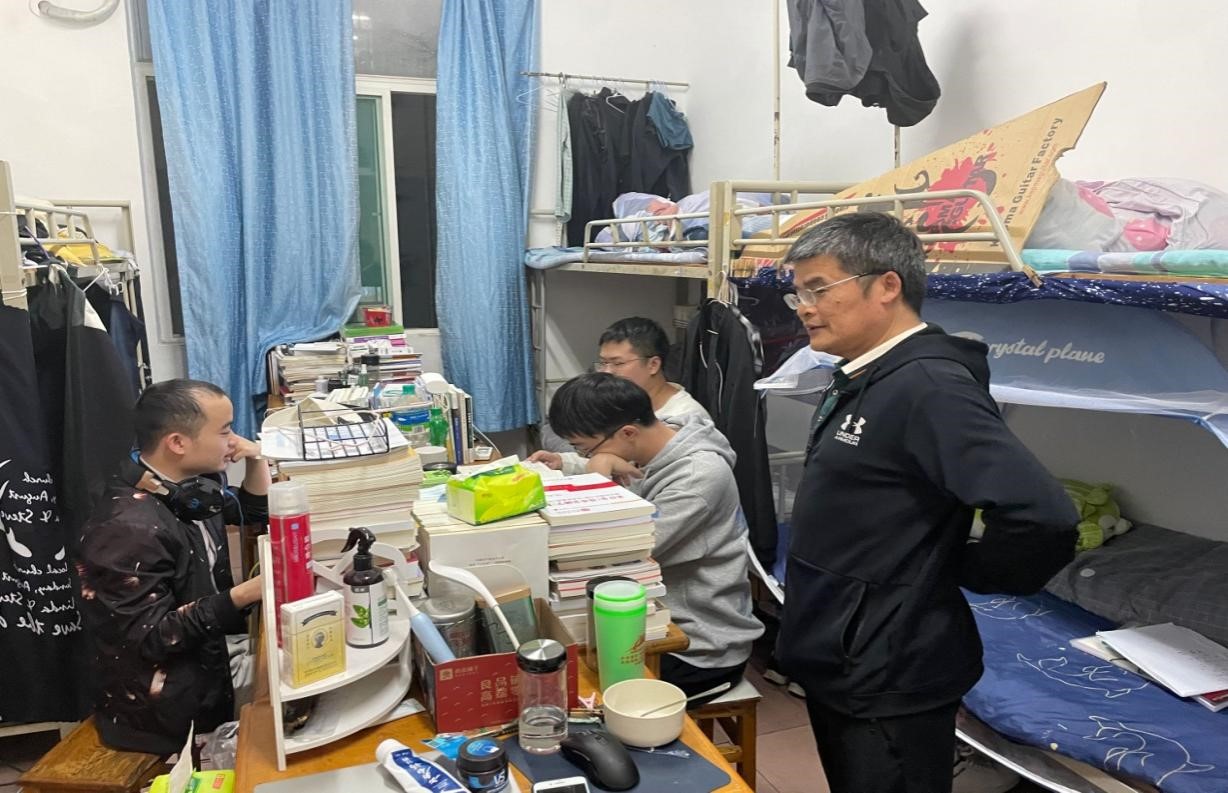 4月中上旬全体辅导员、班主任深入学生寝室,与同学们沟通交流,了解学生生活、学习及心理状况,排查安全隐患,稳定学生情绪,关注学生心理健康。