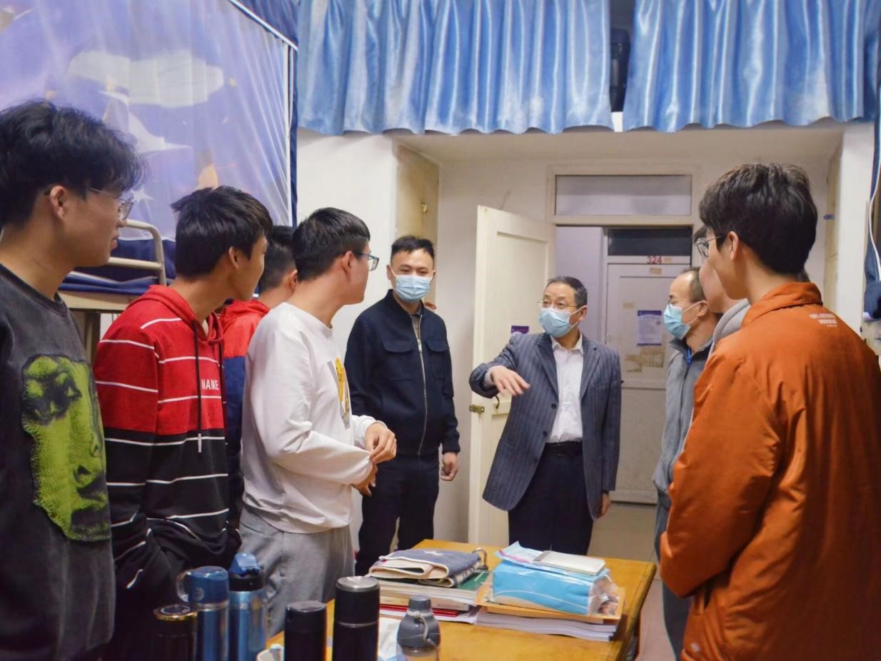 4月15日,pg游戏电子模拟器党委书记漆晗东、院长项益才及辅导员到寝室看望学生,了解学生的生活状况、学习状态和疫情防控落实情况,倾听学生意见。漆书记叮嘱同学们严格遵守学校疫情防控的相关要求,做好个人防护,保持宿舍卫生勤通风。项院长提醒同学们在平常的生活中,注意财物安全、用电安全、人身安全,加强内务整理,合理安排时间,劳逸结合,加强专业知识的学习。