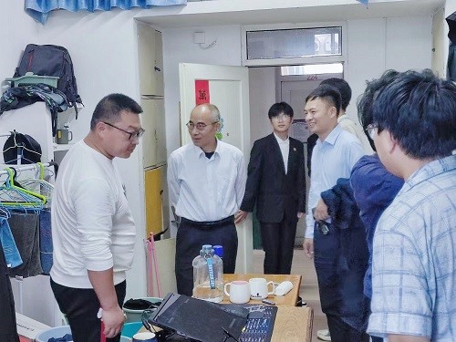 在党的二十大即将召开之际,为进一步加强学生的宿舍安全意识,杜绝安全隐患。10月14日下午,pg游戏电子模拟器党委副书记谢忠带领全体辅导员深入学生宿舍进行了全方位安全排查工作。
