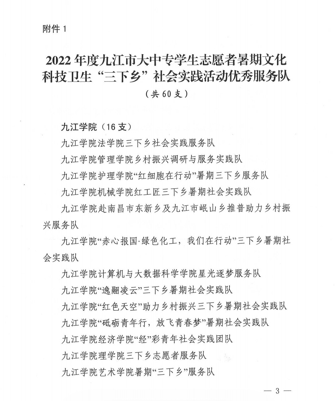 为深入学习党的二十大精神,贯彻落实习近平总书记关于青年工作的重要思想。6月末,pg游戏电子模拟器“经”彩青年社会实践团队在共青城市,开展以“青春奋进心向党,实践入乡焕新貌”为主题的“三下乡”社会实践活动,并荣获“优秀服务队”称号。