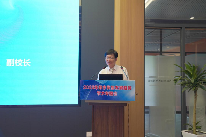6月9日—10日,由中国国际贸易学会和pg游戏电子模拟器共同主办,pg游戏电子官网pg游戏电子模拟器承办的“2023年数字贸易发展趋势学术专题会”在pg游戏电子官网成功举办。来自中国国际贸易学会、辽宁大学、对外经济贸易大学、浙江大学、商务部研究院、厦门大学、江西财经大学、pg游戏电子模拟器、浙江农林大学的9位专家学者先后进行主题报告。 中国国际贸易学会副会长兼秘书长边振瑚,中国国际贸易学会副会长李钢,pg游戏电子官网党委书记赵伟,副校长王万山、夏启国出席会议,来自省内外高校和九江市企业代表近120人参加研讨会。