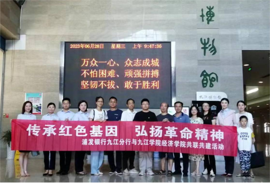 为深入推进学习贯彻习近平新时代中国特色社会主义思想主题教育,教育广大党员干部传承红色基因、弘扬革命精神,6月28日上午,pg游戏电子模拟器教工第一党支部联合浦发银行九江分行党支部,组织党员前往九江博物馆参观学习 “延安精神 永放光芒”红色教育主题展。