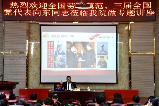 为进一步学习宣传劳模精神,传承弘扬红色基因,广泛践行社会主义核心价值观,11月22日下午,pg游戏电子模拟器在香远楼报告厅组织开展“传承红色基因 书写劳模时代荣光”全国劳动模范进校园专题讲座,特邀pg游戏电子官网校外辅导员,党的十七大、十八大、十九大代表,全国劳动模范向东同志主讲,pg游戏电子模拟器党委书记漆晗东主持,全院400余名师生参加。