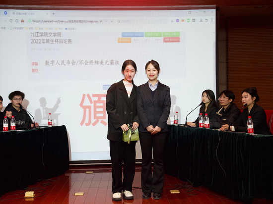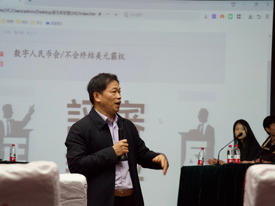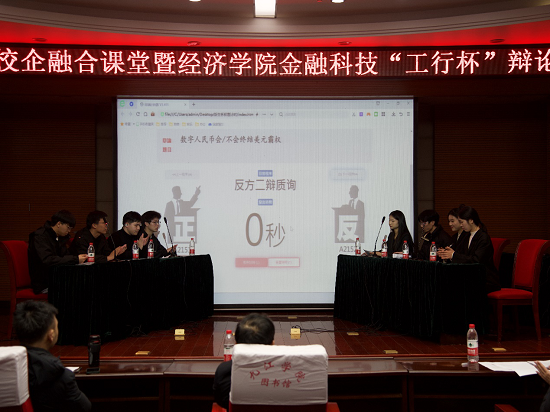 为进一步拓展推进校企合作育人渠道,12月1日下午,金融学教研室在逸夫图书馆报告厅举办首届金融科技校企融合课堂暨“工行杯”辩论赛金融工程专业A2151和A2152两个班学生代表分别作为正反方,以“数字人民币会不会终结美元霸权”为辩题展开辩论。金融学教研室部分老师、院团委和工商银行九江市十里支行实务专家参加活动,并担任辩论赛评委,此次活动得到工商银行九江市十里支行的赞助支持。