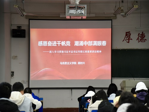 为了学习贯彻习近平总书记考察江西重要讲话精神,12月13日,pg游戏电子模拟器在义丰楼举办习近平总书记考察江西重要讲话精神主题宣讲活动,由龚时兴老师主持宣讲。