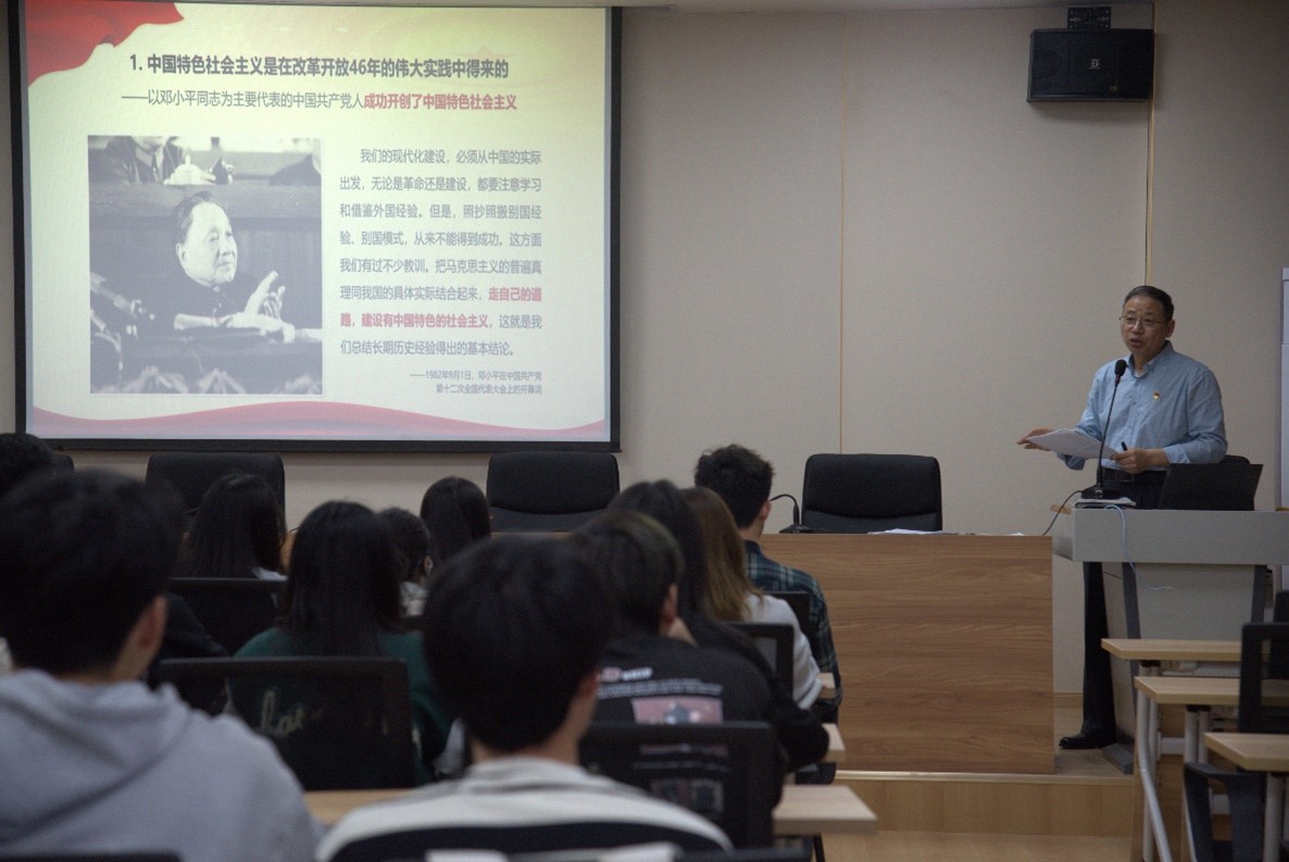 开班仪式结束后,学院党委书记漆晗东为全体学员讲授开班第一课。讲座围绕“回顾党的发展历史”“学习党的创新理论”“做新时代优秀党员”三个方面对习近平新时代中国特色社会主义思想和党的二十大精神进行宣讲。通过生动的素材和详实的数据,不断增进参训学员对党的创新理论的认同。他希望全体学员认真学习贯彻习近平新时代中国特色社会主义思想,笃行实干,用党的创新理论武装头脑、指导实践,坚定信念跟党走,努力为全面建设社会主义现代化国家和实现中华民族伟大复兴贡献青春力量。