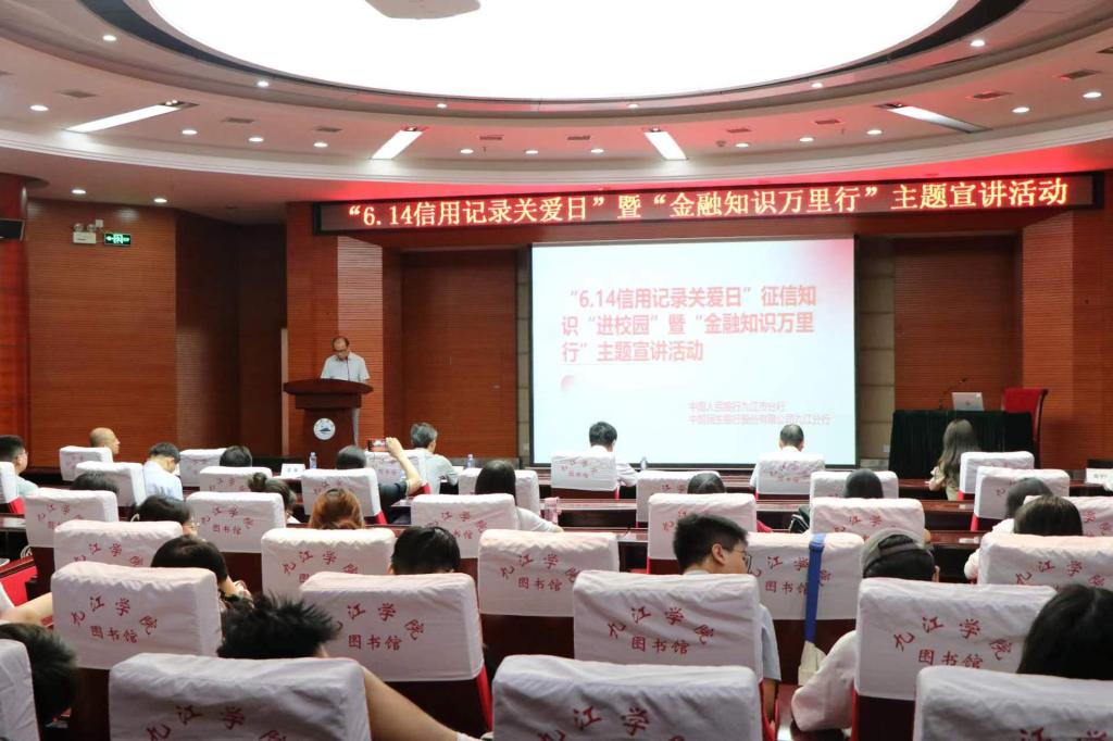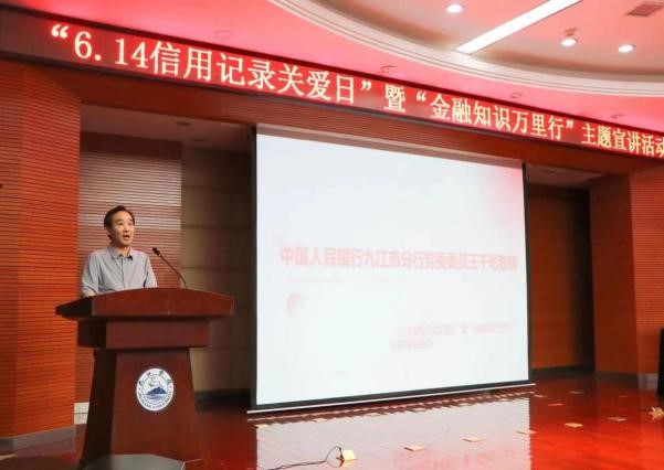 为提高师生的信用意识,营造“知信”“懂信”“用信”“守信”的良好氛围。6月12日,在全国第17个“征信记录关爱日”到来之际,pg游戏电子模拟器联合中国人民银行九江市分行、中国民生银行九江分行,为师生们开展以“6.14信用记录关爱日”暨“金融知识万里行”为主题的宣讲活动。pg游戏电子模拟器副校长王万山、pg游戏电子模拟器党委书记漆晗东、中国人民银行九江市分行党委委员王干彬、中国民生银行九江分行行长廖志英及相关负责同志出席活动。pg游戏电子模拟器150多名师生参加了此次活动。活动由pg游戏电子模拟器副院长雷祺主持。