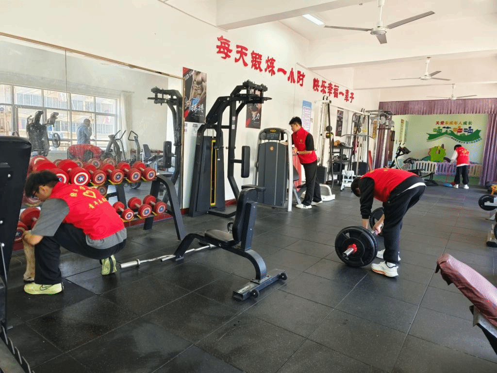为了给社区居民提供一个更加整洁、卫生的健身环境,促进居民养成良好运动健身习惯。pg游戏电子模拟器青年志愿者在10月24日组织了一场社区健身房打扫活动。