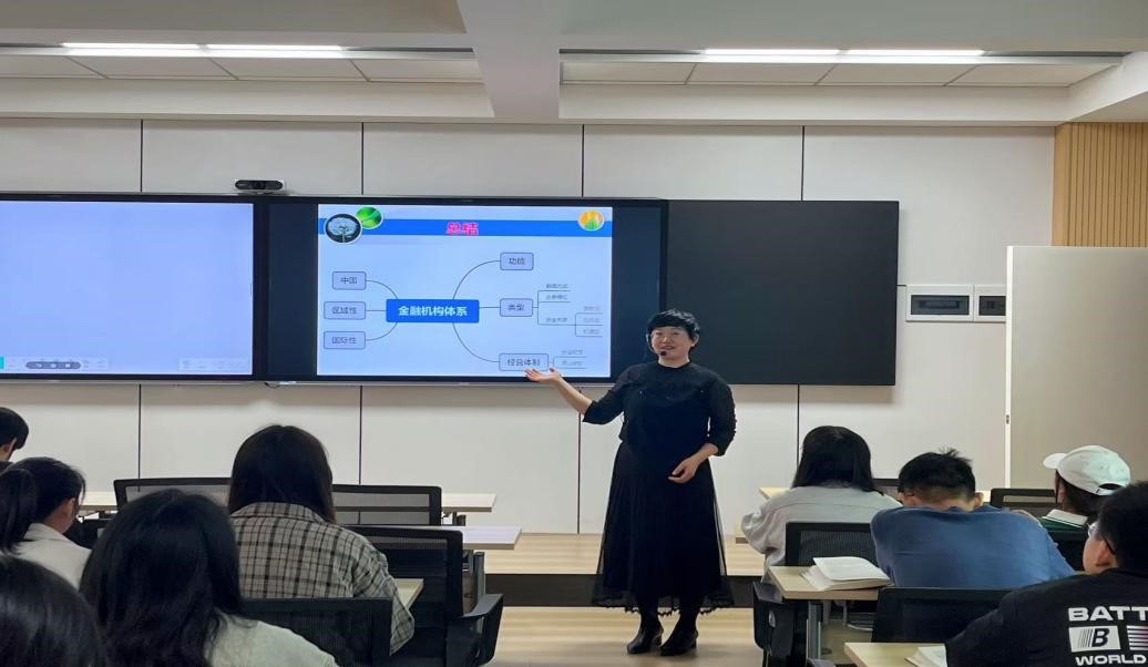 主讲教师带领学生明确了《金融机构体系》章节的价值塑造(魂)+能力培养(核)+知识传授(基)三位一体的教学目标。