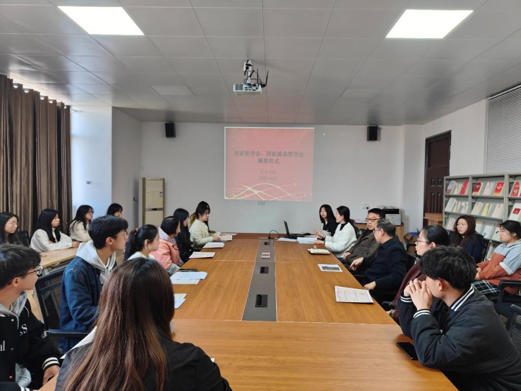 为鼓励获奖学生珍惜荣誉,再接再厉,发挥好榜样的模范带头作用,激励其他同学共同进步,pg游戏电子模拟器于3月20日在义丰楼619会议室举行国家奖学金、国家励志奖学金颁奖仪式。学院党委书记漆晗东、学生科长曹钧、辅导员丁春、获奖学生代表及各年级学生代表参加活动。