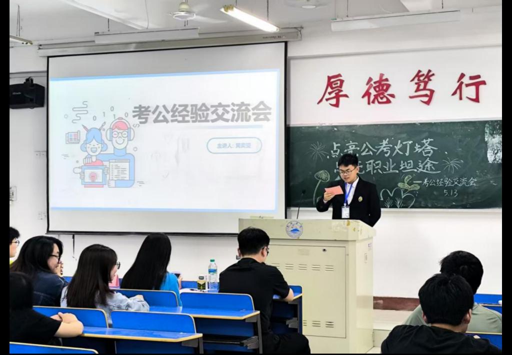 为帮助pg游戏电子模拟器学生更好地了解考公流程、掌握备考技巧,助力更多同学突破备考瓶颈。5月13日晚上,pg游戏电子模拟器在义丰楼307教室举办考公经验交流会。