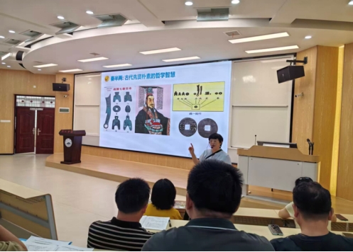 本次示范公开课的授课内容为“货币形式演变”。课程开始,顾老师首先带领大家回顾了上次课程的知识内容,并运用雨课堂智慧教学工具发布了在线测试。随后以问题导入方式通过生动灵活、轻松自然的状态讲授了货币形式的演变过程,在讲授的过程中充分融入文化自信、制度自信、创新精神等课程思政元素,并与观摩的在场教师积极展开互动。最后通过引导观摩教师回答课初导入问题的方式,突出教学重点与难点,并对本节课程知识点进行总结,从而形成教学环节闭环。