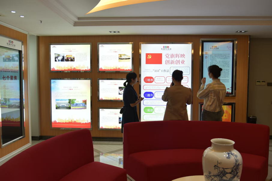 在恒盛科技园总经理、党支部书记芮晓红的陪同下,pg游戏电子模拟器师生一行先后参观了园区党建展厅、企业孵化区,了解了园区“333”工作法下创新创业工作成效。园区坚持以“党建强”引领“发展强”,通过设立党员先锋岗、开展红色教育活动等方式,不断增强组织凝聚力,激发创新创业活力,为入驻企业营造了良好的发展环境。