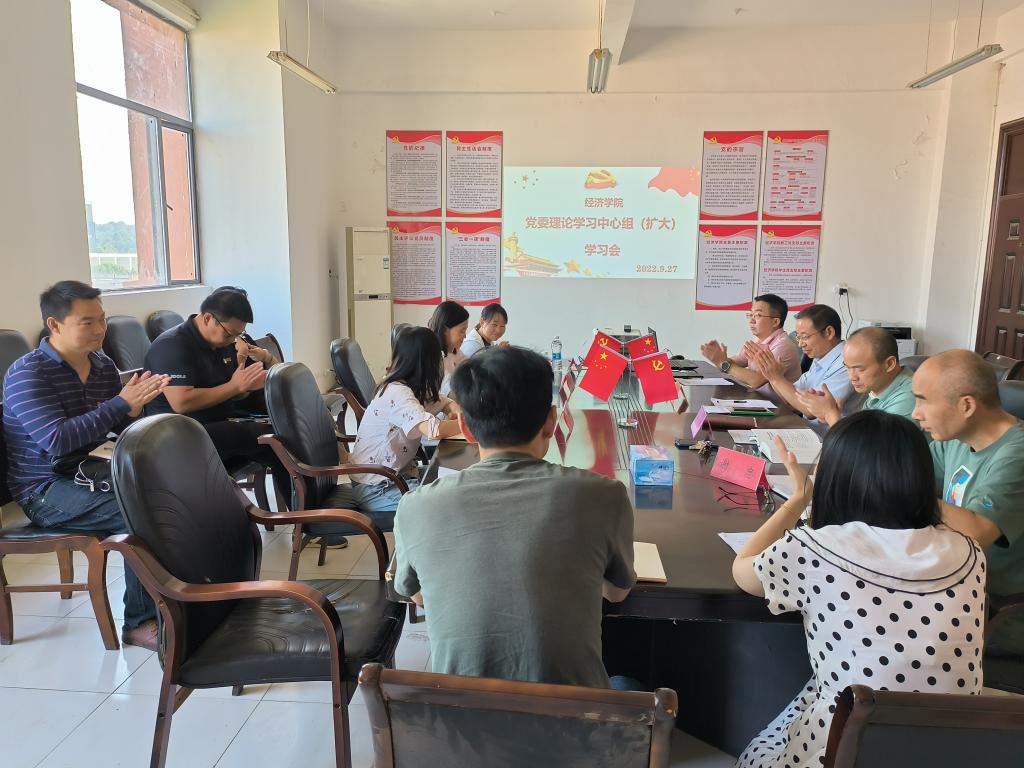 9月27日上午,pg游戏电子模拟器在义丰楼619会议室召开党委理论学习中心组第八次(扩大)学习会议,党委书记漆晗东主持会议,院长项益才、党委副书记谢忠、副院长李华、各科室负责人参加了此次学习会。管理学院、法学院、外语学院和旅游学院四个兄弟学院的组织员列席旁听。
