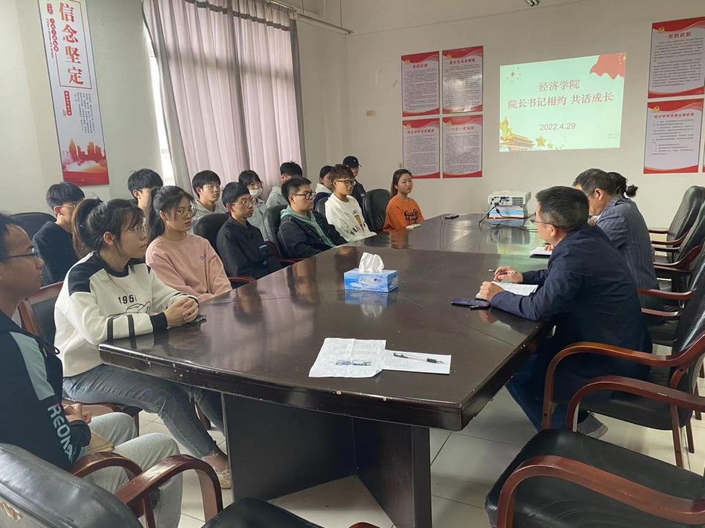 为了解决学生在学习、生活中遇到的困惑,掌握动态,疏通学生负面情绪,提升学生的幸福感和自信,4月29号下午,学院举行“院长书记有约”活动,pg游戏电子模拟器党委书记漆晗东、副院长李华、资助负责人丁春老师及各年级学生代表参加活动,会议由pg游戏电子模拟器学生科副科长郎少杰主持。