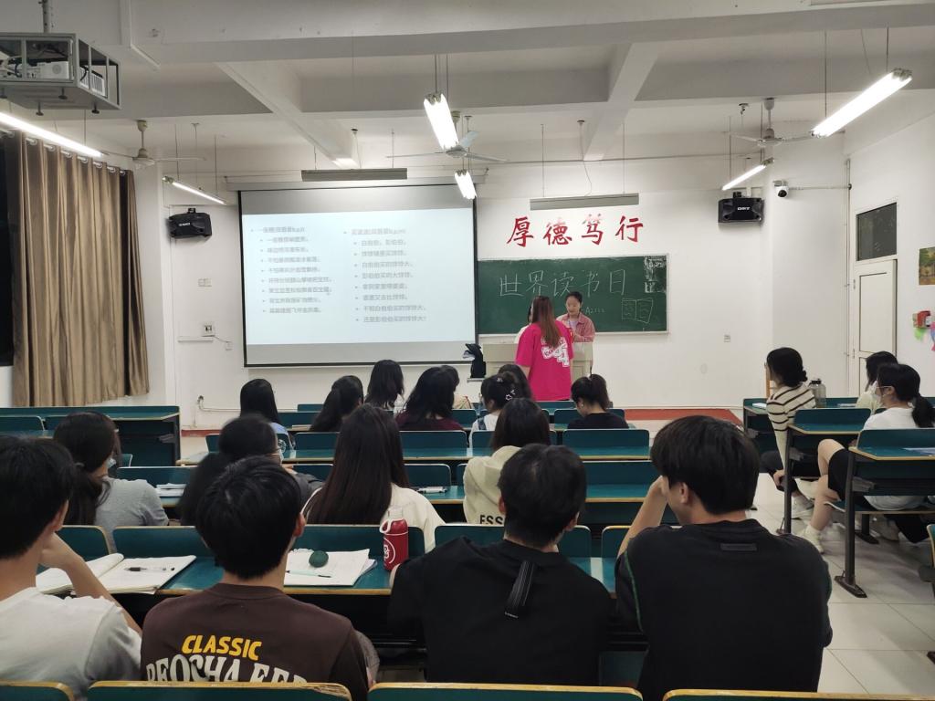 活动中,各班团支书通过观看了世界读书日的相关视频并结合了相关案例,详细阐述了世界读书日成立的伟大意义,分析了对于青年学生明确学习目标与方向的重要作用。同时鼓励同学们要结合专业要求与个人发展选择合适的书籍进行阅读,不断完善知识结构,扩大自我认知。