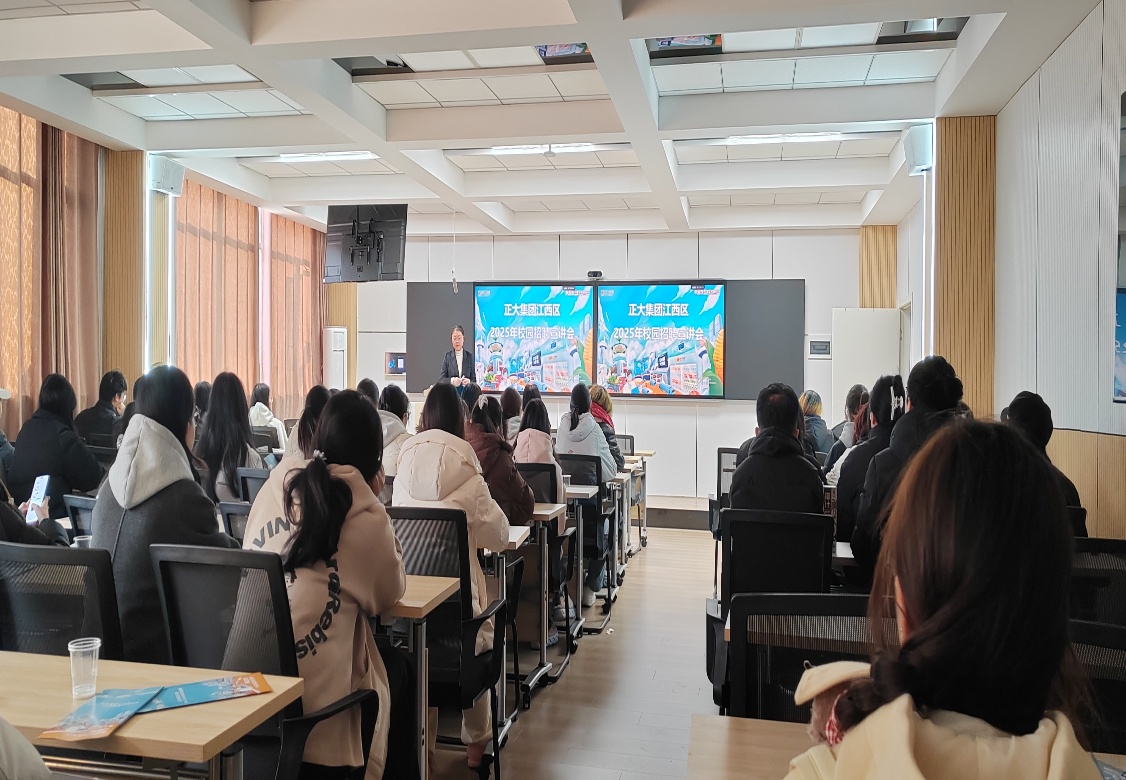 宣讲会上,正大集团江西区招聘负责人围绕企业发展历程、核心业务板块、人才培养体系及本次招聘岗位展开全面讲解。负责人重点介绍了集团在农牧食品、商业零售等领域的产业布局以及为应届生量身打造的“管培生计划”,详细叙述薪酬福利、晋升通道与职业发展前景,让在场学子对企业有了更直观、深入的认知。