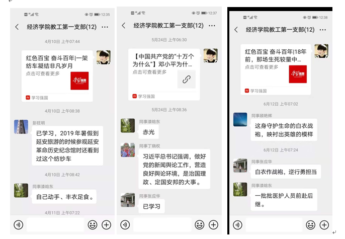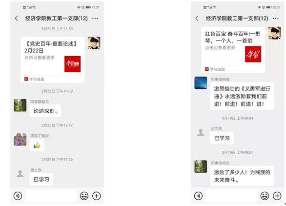 听完习近平总书记的讲话,pg游戏电子模拟器教工一支部积极想办法,除了利用召开支部大会的机会统一学习之外,大家一致认为可以采用微信形式,每天学习一篇党史知识。