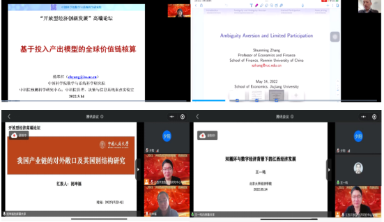 针对当前我国处于全球产业链低端,出口加工贸易比重较大,加工贸易出口品生产需要消耗大量进口品,对于中国等贸易结构比较特殊的国家来说,这种重复计算更加严重,杨翠红教授提出了基于投入产出模型的全球价值链核算方法;张顺明教授以Rsik、Ambiguity、Uncertainty等概念作为切入点引出了当前金融学领域研究的前沿热点问题,详细解读了金融学中重要概念的定义、内涵及其发展,并对金融学中风险和暧昧做了细致的分析,针对繁杂的数学知识做了精简的描述;王一鸣教授针对当前的双循环和数字经济背景,结合江西发展的实际情况,提出了推进大数据应用、助江西产业提质,促进服务数字化、拓展消费新场景,加快贸易数字化、推动外贸新发展,借助数字化传播、提升品牌影响力等一系列举措;祝坤福教授对风险敞口概念进行了介绍,提出了基于全球化生产特征的产业链外部敞口测算框架,并测算了我国产业链的敞口规模和国别结构,为我国产业链风险研究提供了基础数据指标的支持。
