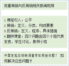 课前引导:在班级 QQ 群里发放导学单,基于 OBE 理念,引领学生完成全程学习。然后通过超星网络教学平台利用线上教学资源向学生发送与倾销和反倾销有关的新闻视频,创设教学环境,让学生对教学知识目标有一个初步的了解,同时培养学生家国情怀。