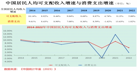 22014-2022年中国居民人均可支配收入与消费支出增速